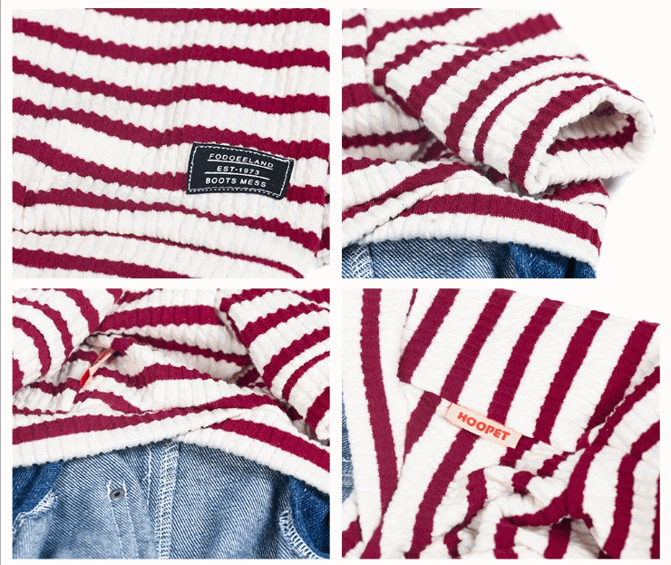 ボーダー柄でカジュアルなデザイン、柔らかい素材で、服が苦手な子でも嫌がらず着れそうです。