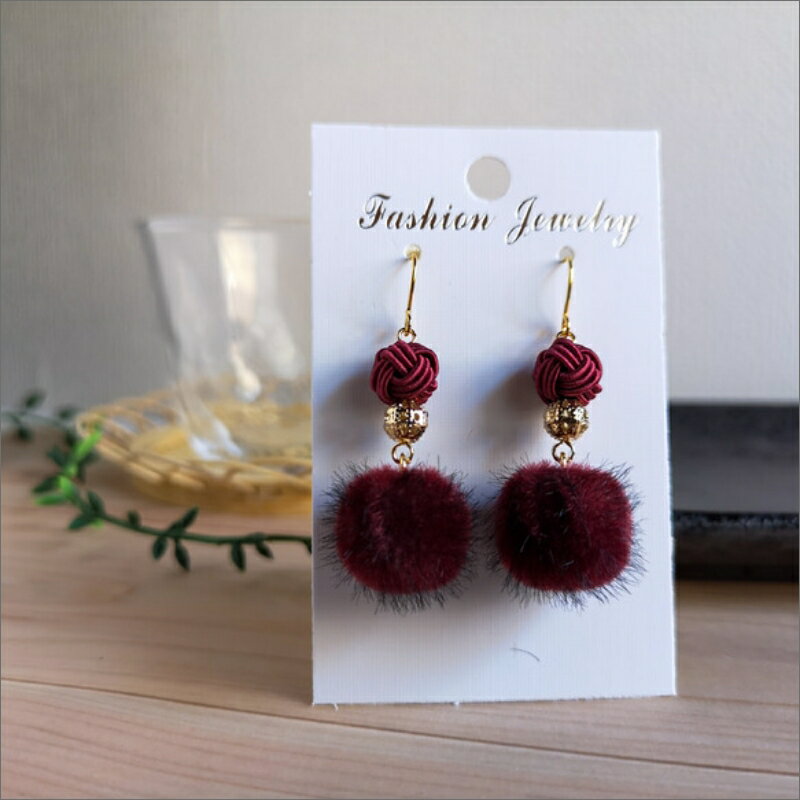 エレガントな印象の、ボルドー×ワインレッドは一番人気です! ふわふわ優しいファーボールで一味違った横顔を演出します。