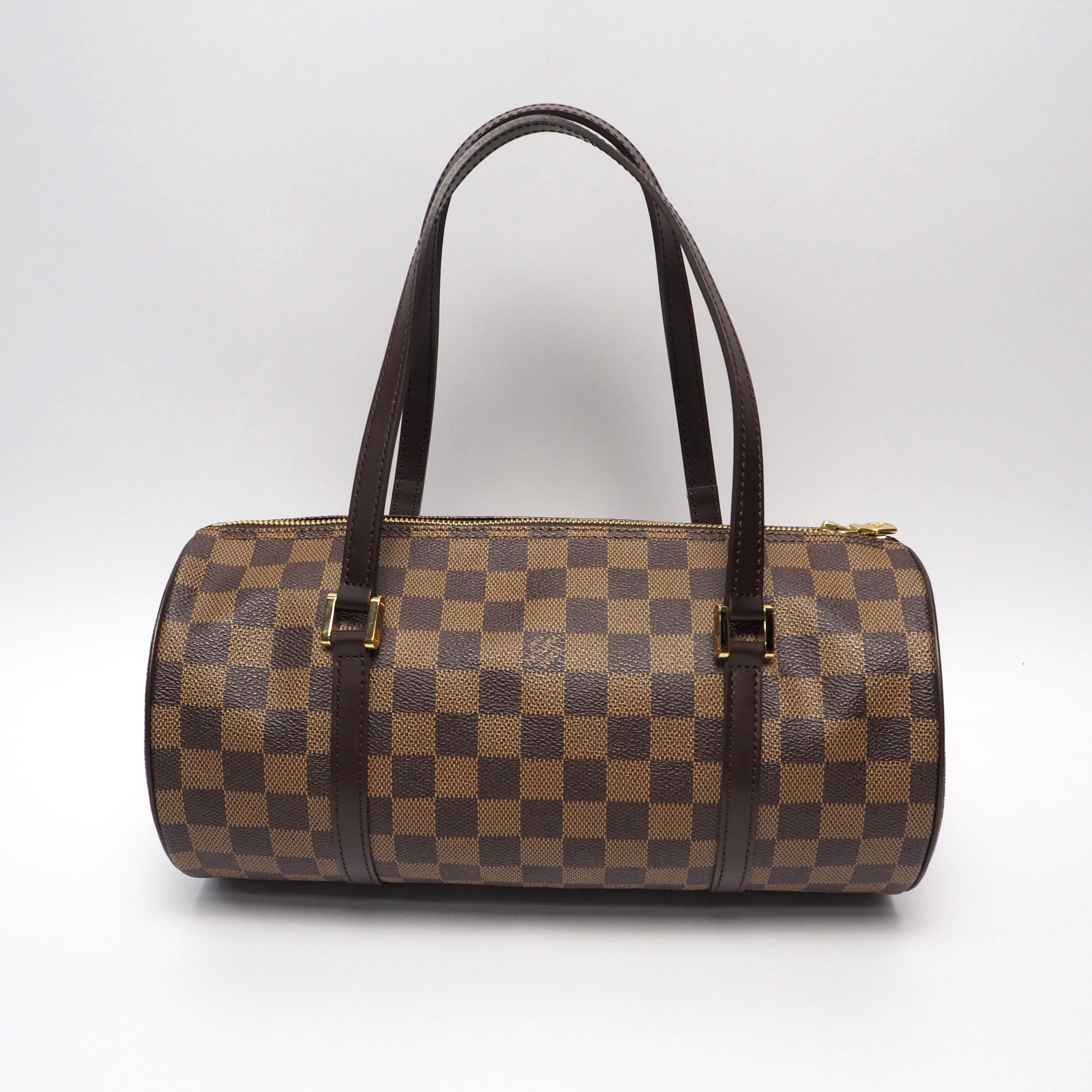 【中古】【非常に良い】 LOUIS VUITTON ルイヴィトン ダミエ パピヨン30 親子 ハンドバッグ 鞄 レディース ポーチ付き ダミエキャンバス/レザー ゴールド金具 ダークブラウン/ブラウン N51303 LOUIS VUITTONハンドバッグ Louis Vuitton パピヨン30 ブランド:LOUIS VUITTON (ルイヴィトン)型番:N51303シリアル:MB0035ライン:ダミエカラー:ダークブラウン/ブラウンインナーカラー:ブラウン(赤系)金具カラー:ゴールド[本体サイズ]約W30×H15×D15(cm)[ハンドル長さ]約46.5cm※金具含まず[ポーチサイズ]約W15.5×H6×D6(cm)[ハンドル長さ]約37.5cm[仕様]ファスナー開閉式[付属品]ポーチ【状態詳細】コンディションランク:A[外側]金具に小傷、ハンドルに少しシワがありますが、非常に綺麗な状態です。