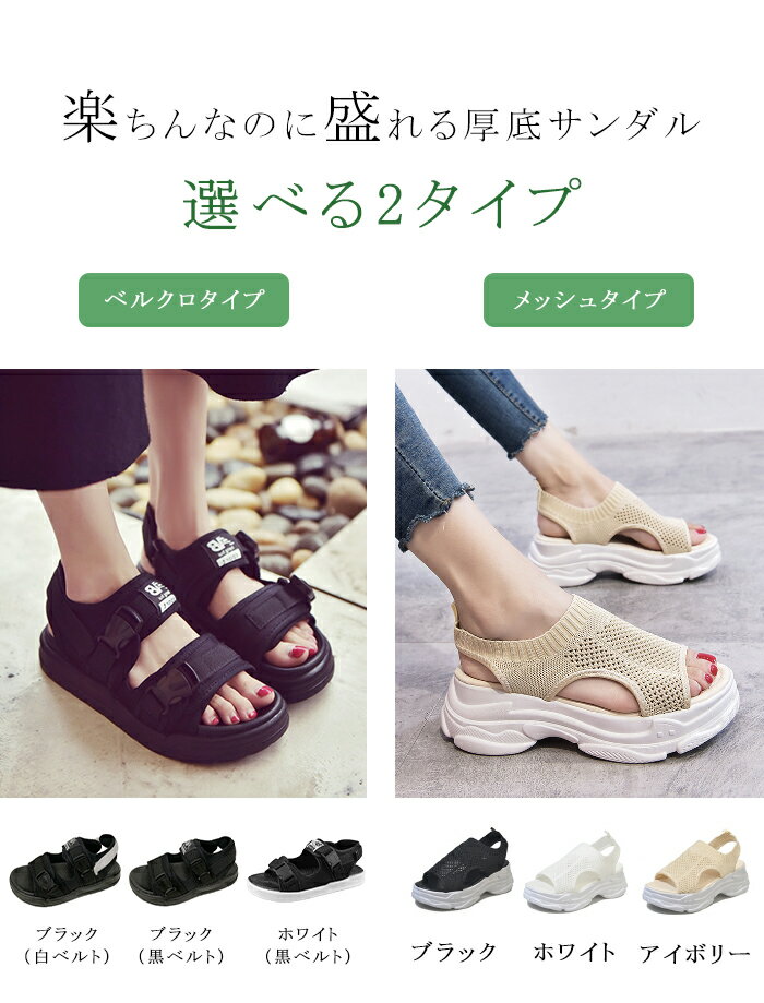 <期間限定:1足1,990円!> サンダル レディース 厚底 おしゃれ フラット 歩きやすい 厚底 ベルクロ スポーツ スポーツサンダル メッシュ ニット 疲れにくい ウェッジソール カジュアル【 選べる2タイプ★厚底スポーツサンダル 】 ダークエンジェル A会場