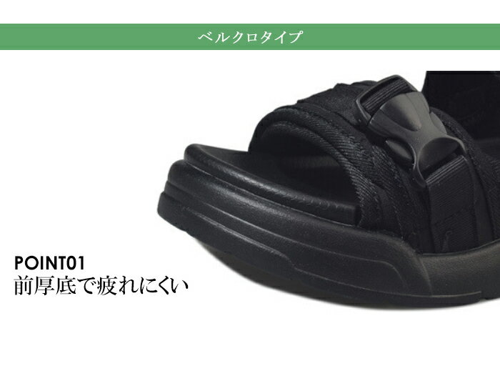 厚底スポーツサンダル 】 ベルクロタイプ… スポーティーなマジックテープで固定できるデザイン。