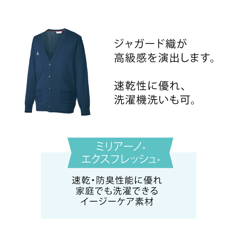 カーディガン ルコック 長袖 春夏 洗える 学生 中学生 高校生 介護 ヘルパー ケアワーク 受付 歯科 制服 医療事務 白衣 速乾 防臭 男女兼用 UZL6011