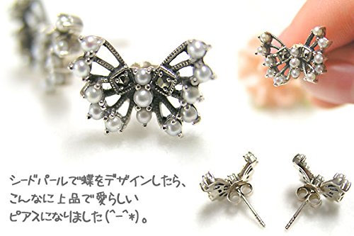 マテリアル シルバー 使用石 シードパール 13石×2 大きさ 縦10mm * 横14mmアンティーク調 * シードパール 蝶・ピアス 13石のシードパールで 蝶をデザインした 上品で愛らしいシードパールピアスです。