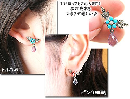 マテリアル シルバー 使用石 シードパール 1石×2 トルコ石 5石×2 or ピンク珊瑚 5石×2 大きさ 縦17mm * 横8mmアンティーク調 * シードパール 小花のプリズム・ピアス【送料無料】 トルコ石には、パープルのプリズム。